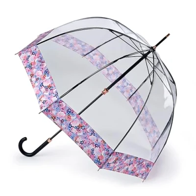 Iconic dome shaped umbrella provides complete coverage of head and shoulders Transparent high grade PVC cover for ease of vision when walking with a fabric printed border Patented open and close mechanism for ease of use Extra strong fibreglass frame with 8 ribs - rib length: 63cm and matching colour metallic tips and ferrule detail Length closed: 96cm, Span when open: 88cm, Weight 480g approx.