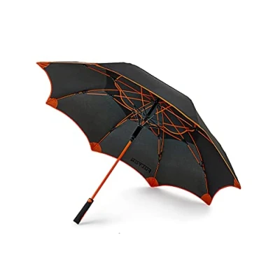 Windproof vent-cover preventing inversion in windy conditions Lightweight and flexible fibreglass frame for extra strength with high performance polyester fabric Easy to grip handle with a stylish carry case Rust proof materials Length closed: 98cm, Supersize canopy with 136cm span when open, Weight 950g approx