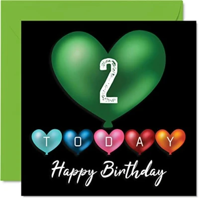 Fun 2nd Birthday Cards for Boys Girls Heart Balloons Happy Card Son Daughter Brother Sister Grandson Granddaughter Niece Nephew Cousin, 145mm x Greeting