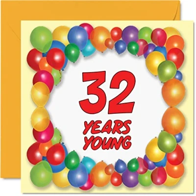 Fun 32nd Birthday Cards for Men Woman Years Young Happy Card Dad Uncle Son Daughter Cousin Sister Mum Auntie Brother, 145mm x Greeting Cards,