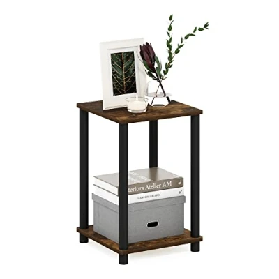 Furinno End, Side Table, Nightstand, Composite Wood, Amber Pine/Black, 1 Pack