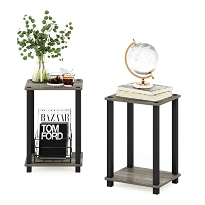 Furinno End, Side Table, Nightstand, Small, French Oak/Black, 2 Pack