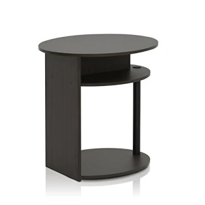 Furinno JAYA Simple Design Oval End Table, Side Bedside Walnut