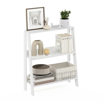 Furinno Ladder Bookcase Display Shelf, 3 Tier, White