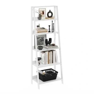 Furinno Ladder Bookcase Display Shelf, 6 Tier, White
