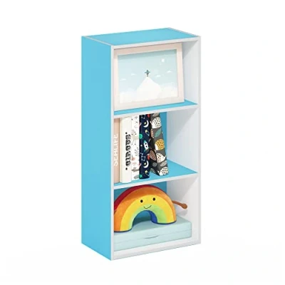 Furinno Luder 3 Tier Open Shelf Bookcase, Light Blue/White