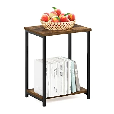 The simple and industrial design end table adds a touch of rustic feel to your living space. The 2-tier shelf offers additional storage that meets all of your different storage needs. The bottom can hold up to 9 kg, the top can hold up to 7 kg. Metal frame provides both structural support and an elegant accent. Manufactured from high-quality durable composite wood, CARB-compliant composite wood carrying the Programme for the Endorsement of Forest Certification (PEFC). Product Dimensions: 29.79 (D) x 38.61 (W) x 50.01 (H) cm
