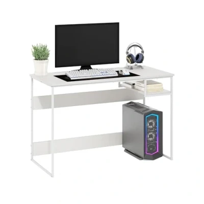 Furinno Modern Lifestyle Study, Computer Desk, Engineered Wood, Solid White/White, 114cm Wide