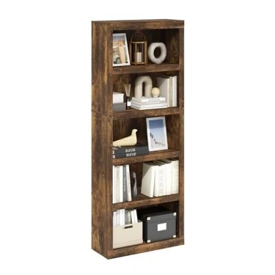 Minimalist design featuring clean lines complements both modern and traditional interiors, making it suitable for small spaces such as apartments or dorm rooms. Perfect for holding books, decorative items, photo frames, and even small plants, easily adding character and style to your space. 5 levels open shelves with ample space for storage. Each shelf has a weight capacity of up to 6.8 kg. Manufactured from high-quality durable composite wood, CARB-compliant composite wood carrying the Programme for the Endorsement of Forest Certification (PEFC). Product Dimensions: 25.70 (D) x 62.51 (W) x 161.39 (H) cm.