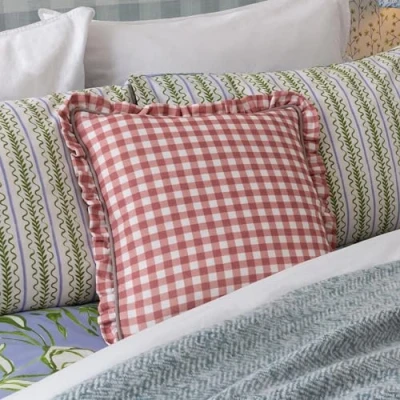 Featuring a traditional on-trend gingham check pattern in a range of seasonal tones. Complete with a dual-sided design, piped frilled trim and hidden zip fastening. Made of super soft, 100% cotton fabric. Machine Washable (30 degrees max), Low Tumble Dry and Cool Iron Only.
