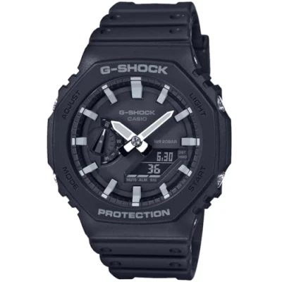 Classic and charming watch perfect for every occasion -The watch has a calendar function: Day-Date, Stop Watch, Worldtime, Countdown, Alarm, Light High quality 21 cm length and 24 mm width Black Plastic strap with a Buckle Case diameter: 45 mm,case thickness: 11 mm, case colour: Black and dial colour: Black Water resistant: 20 bars -Weight: 52 g The watch is delivered in an original gift box and has a warranty of 2 years
