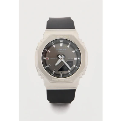 Analog-digital display: G-Shock watch with dual display that combines analog hands and digital screen for a full time reading Stainless Steel Case: Sturdy silver stainless steel case with distinctive octagonal design and G-Shock shock protection Water resistance: Water resistant up to 20 BAR (200 m), ideal for swimming, snorkeling and water sports Resin Strap: Durable and comfortable black resin strap ensures secure fit and durability Advanced functions: Includes world time, hourly signal, automatic calendar and lighting for low-light use