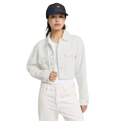 G Star Cropped Wander Jacket Destroyed Denim jacket, Women's, Size: Medium, Light chalk