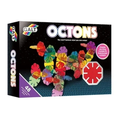 Simple octagonal pieces in translucent colours which interlock easily to make a wide variety of models Create a plane, dinosaur or dog following the illustrated models in the guide or design your own A creative and versatile construction set for younger children Contains 48 translucent Octons in 6 assorted colours and step by step guide Suitable from age 4 and up, Manufacturer: James Galt & Company Ltd