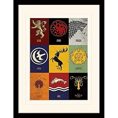 Game of Thrones (Sigils) 30x40 cm Mounted & Framed Officially licensed product Produced in the UK Ready to hang 30cm x 40cm Print in Black Frame with Plexiglas