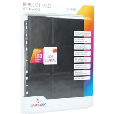 The 18-pocket pages side-loading holds 10 pages with 18 side pockets each for a total of 180 cards (also with double sleeve) The album offers optimal protection for the cards thanks to strong and durable material Thanks to 18 sideloader pockets per page, the cards are also protected from falling out The album offers space for both standard and Japanese sized cards and is ideal for double sided cards 10 sideloader pages | 18 sideloader pockets | acid free. No PVC