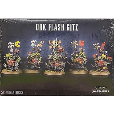 ork flash gitz warhammer 40,000 multi-part plastic kit makes five flash gitz armed to the teef with flashy snazzgun's. this kit comes unpainted and requires assembly miniatures made of plastic. Number of players: 2, Manufacturer: GAMES WORKSHOP
