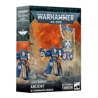 Games Workshop - Warhammer 40,000 - Space Marines: Ancient in Terminator Armour A plastic miniature for Warhammer 40,000 Add a standard-carrying, elite warrior to your Space Marines army - Easy to customise with four head options, two right arms, and a pair of banner toppers Inspire your troops to fight even harder while in sight of your Astartes Banner Plastic Model Kit, Manufacturer: Games Workshop