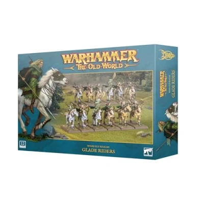 Games Workshop - Warhammer - The Oid World - Wood Elf Realms: Glade Riders 12 plastic miniatures for Warhammer: The Old World Flexible and skillful light cavalry to your Wood Elf Realms army Decimate your enemies with versatile Asrai longbows before riding in and finishing them off with cavalry spears. Easy to personalise with interchangeable heads, weapons, and legs Plastic Model Kit, Manufacturer: Games Workshop