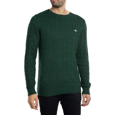 GANT Men's Cotton Cable C Neck Pullover Sweater, Green, 3XL