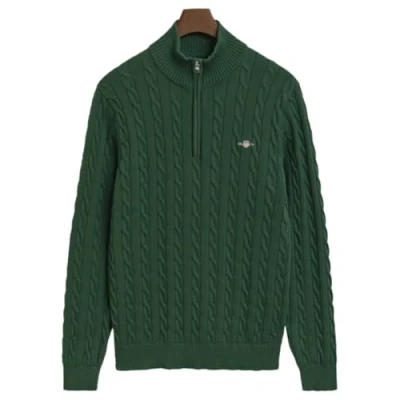 GANT Men's Cotton Cable Half Zip Pullover, Forest green, S