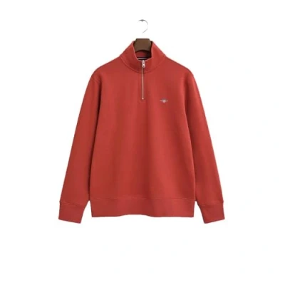 Plain sweatshirt from GANT Cotton blend sweatware Regular fit with troyer collar Half zip for a classic look A versatile base for late summer evenings or cool fall mornings