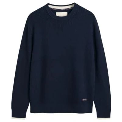 GANT Men's Ribbed Cotton C Neck Pullover Sweater, Evening Blue, S