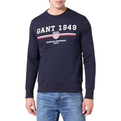 GANT Men's Graphic C Neck Sweat Sweatshirt, Evening Blue, S