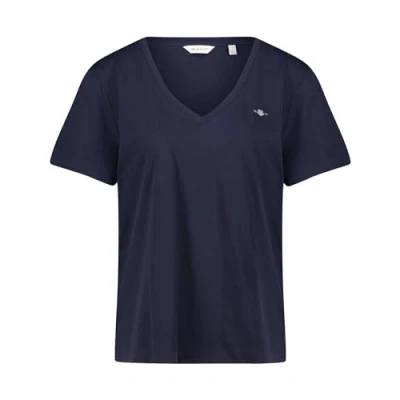 GANT Shield Vneck Basic Tshirt, Women's, Size: Medium, Evening blue