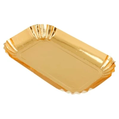 Made of cardboard Measures 9.5 cm length by 5 cm width Available in gold colour Ideal for use in serving snacks