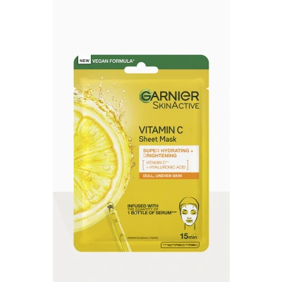 Ready, set, glow! Garnier s Vitamin C Sheet Mask contains the quantity of one full bottle of serum, infused with actives Vitamin C and Hyaluronic Acid for an instant boost of radiance! Simply apply the vegan sheet mask for 15 minutes for intensely rehydrated skin that looks more even and brighter.* Vegan