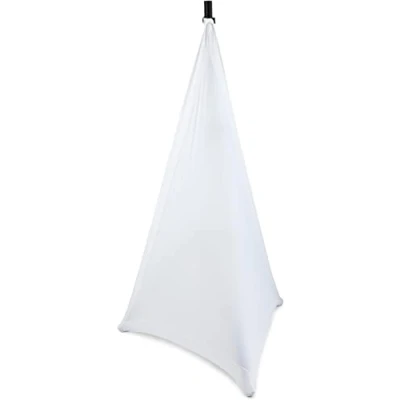 White scrim design to cover two sides of your tripod style speaker stands Fit for two sides A clean & professional look for dj - corporate or worship application White fire retardant acoustically translucent material Machine washable