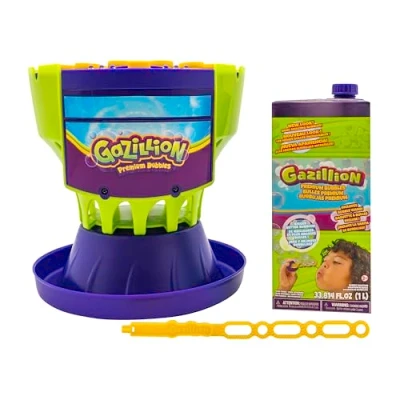 OUR BIGGEST BUBBLE MACHINE - Prepare for bubble mania with the Gazillion Ultimate Bubble Craze Machine! Enjoy a magical bubble bonanza as our mega bubble blower releases thousands of bubbles into the air! COLOUR CHANGING LIGHT-UP BUBBLES - Illuminate the room and transform your giant bubbles into a kaleidoscope of colours with the incredible built-in LED lights. Dance and play whilst the bubble maker lights up a colourful cloud of bubbles SUPER SIMPLE TO USE - Making bubbles for kids has never been easier with the Bubble Craze Machine. With just the press of a button on the top of the machine, you can start or stop as you please – it’s easy enough for kids to use! EASY CLEAN BUBBLE BLASTER - No fuss and no mess! Our kids bubble machine is fitted with a removable, washable base that makes cleaning a breeze, while the easy-to-empty funnel helps you pour any leftover bubble mixture back into the bottle THE ULTIMATE BUBBLE MACHINE FOR PARTIES - Take any celebration to a new level of fun with Gazillion Ultimate Bubble Craze! It’s the perfect party essential for birthdays, weddings, parties, and sun-soaked summer days, Manufacturer: Funrise, Inc