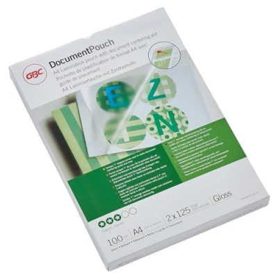 A4 hot lamination pouches providing long lasting protection for your documents, Ideal for photos, notices, temporary signs, menus and more Suitable for use with all hot laminators, 2x125 micron with a gloss finish to enhance colours, Available in a range of sizes and microns Designed to perfectly frame standard A4 paper with sufficient margin for error correction and easy paper alignment, 216 x 303mm (Oversize A4 ) Adaptable to paper size and shape and can be easily cut-to-fit, Long lasting protection from dirt, dust and moisture Contents: 1x GBC Document Laminating Pouches, A4, 2x125 Micron Gloss, Pack of 100, Weight: 1.888 kg, 3200723