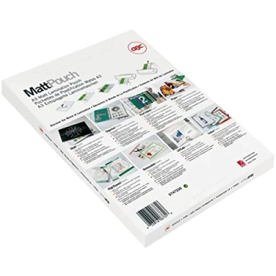 The GBC A4 laminating pouches are ideal for protecting and decorating reference pages, announcements, tables and other A4 pages. Thenon reflective, matte finish, silky touch gives your documents a professional look with extra strength and durability. The combined matte/gloss lamination reflects little light. The pack contains 100 sleeves to be used in combination with your laminator. The sleeves have a standard thickness of 2x75 microns.We advise you to take the 123ink version of these laminating pouches.