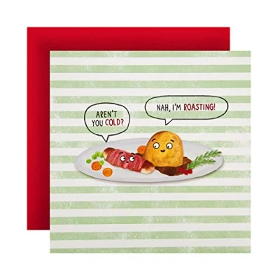 Send someone a smile at Christmas with this fun, pun based card from Hallmark. 100% Recyclable, FSC Certified, Textured Board. Red Foil Lettering and Highlights. Message Inside Reads: Enjoy! Comes complete with Co-ordinating Bright Red, Hallmark Branded Envelope Measures 16cm x 16cm, Within Standard UK 'Letter' Size Limits