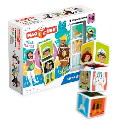 On the sides of the Magicube magnetic cubes, various figures or animals are shown vertically. And because the cubes are magnetic, they stick together on all 6 sides. When you put the figures correctly, the fun really starts. Think of good combinations and enjoy the hilarious shapes. The set contains 6 magnetic cubes Three-dimensional constructions: thanks to magnetism, Geomag Magicube implements the category construction that allows solid three-dimensional constructions through a simple and creative game activity Develops dexterity: the children are actually the ones who create Magicube, a toy that develops and takes shape only thanks to their imagination. Thanks to the individual dice, the game allows the development of manual skills, even for smaller children Geomag - Products are classified in the STEM category (abbreviation for science), technology (technology), engineering (engineering) and mathematics (mathematics)), indicating an interdisciplinary approach to learning Swiss quality product. All products comply with the strictest European and international safety regulations, Manufacturer: Geomag