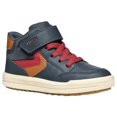 Geox Arzach BOY Hightop trainers for kids, Size: 4, Navy/cognac Imitation leather/ textile