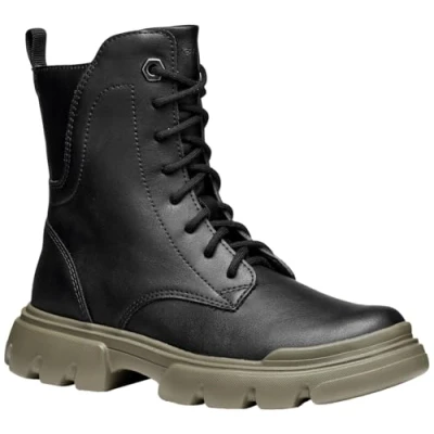 Geox Junette Laceup ankle boots for kids, Size: 4, Black/olive shoes
