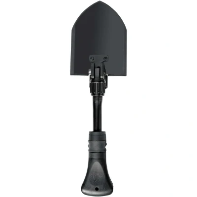 The Gerber Gorge Folding Shovel is a lightweight and foldable shovel which is ideal to bring along on your backcountry trips. A glass-filled nylon shaft and rubberized handle secure the grip for digging or hammering. The Gerber Gorge is a versatile folding shovel that you can use as a spade or fold the handle back to reveal a hammer for pounding. The handle is easy to fold away with the push of a button.