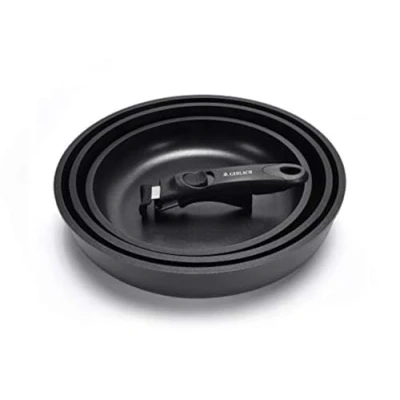 Gerlach Smart Pan Set Frying Ceramic Coated Pans Suitable for Induction Cookers Electric Gas Hob Pots Black 3 Pieces 20 cm 24 28