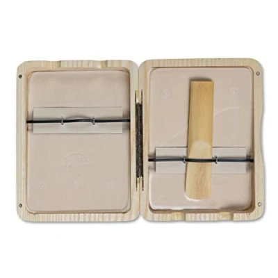 Solid wood case with spring mechanism For 6 tenor saxophone reeds with a length of max. 9 cm Especially hardened plastic pane Ventilation slots for optimal air circulation Natural lacquered finish