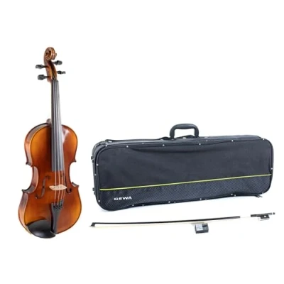 High quality: The back and sides are made of solid European maple, while the solid European spruce top guarantees first-class sound quality. Hand lacquer finish: The brown-amber coloured natural resin lacquer is carefully applied by hand, creating an aesthetically pleasing and protective surface. Precise craftsmanship: Each viola is unique thanks to the hand-lacquered surface (slight colour variations possible), the inlaid shavings, the ebony set and the original Aubert bridge, guaranteeing high-quality workmanship and detailed craftsmanship. High-quality equipment: The viola has a Wittner fine tuning tailpiece, Thomastik Infeld AlphaYue strings, ebony chinrest and is supplied with rosin. The option of a massaranduba or carbon bow with natural hair offers individual choice. Complete set: The viola set is supplied in a moulded case or case with screw-on cover, rucksack straps and reflectors. Thanks to the ready-to-play design from the GEWA string workshops, the instrument is ready to play and has been visually and technically checked before despatch. Scope of delivery: Viola 40.8 cm, viola case, carbon fibre bow.
