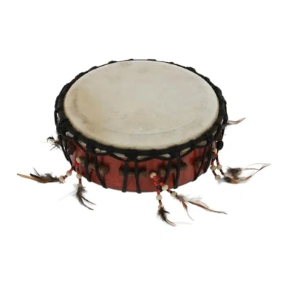 Indian drum with rope tension Wooden frame With feather adornment Without beater Diameter 22 cm