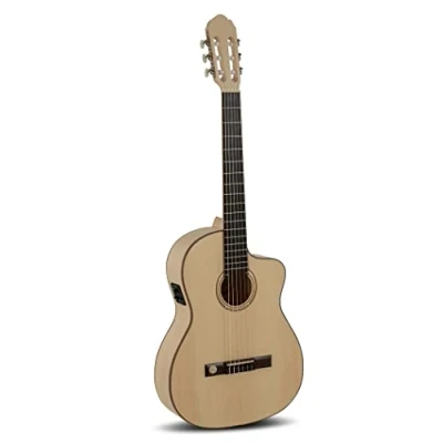 4/4 size with cutaway, Scale 650 mm, 48 mm nut width, Solid Spruce top Maple neck, arched Acacia fingerboard and bridge, 3-ply wooden top binding, 1-ply wooden back binding, Chrome-plated machine head with lyra and acrylic buttons Semi gloss finish, Fishman bridge pickup and Clásica II pre-amp with tuner, Made in Europe, Back and sides Maple, Headstock rest Maple