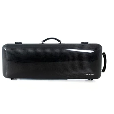 IDEA 3.2 double case for 1 violin and 1 viola, made in Germany, carbon shell made from 100% carbon fibre fabric, weight approx. 3.2 kg without accessories, with additional side handle on the short side (individually adjustable via Velcro strap) Padded floating bearing, GEWA arc holder pat., interior design adjustable Flexible bow bridge, protective cover, accessory bag Attached removable music pocket, 2 neoprene backpack straps to be carried across the cross Black carbon fibre exterior, black interior velour lining