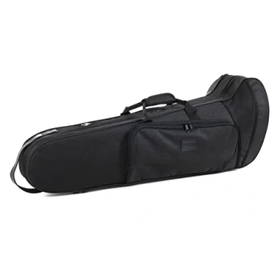 Sturdy, very lightweight Compact case, Inner shell made of sturdy flax fibres High-quality, attached exterior cover, Inside: adjustable foam pads to fix the instrument Music sheet pocket, mouthpiece pocket, side handle, 2 detachable, comfortable rucksack straps; can also be used as shoulder strap Interior: black velour, Bass trombone form-shaped case