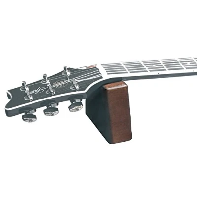 Neck rest for guitars Holds the instrument during repairs For 60 mm maximum neck width, Solid Beech, brown lacquered, genuine leather rest, Also for instruments with nitro finishes