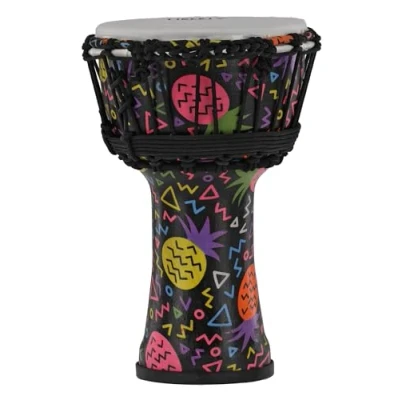 High-quality workmanship: GEWA Liberty Djembé with a robust PVC body for exceptional durability and easy handling. Optimum sound quality: equipped with a synthetic head, it delivers clear and powerful tones, ideal for beginners and professionals. Fixed rope tension: Equipped with 14 rope runners, the djembé is already professionally tuned. Perfect Size: Diameter: 7‘ (17.8 cm), Height: 12.5’ (31.5 cm). Ideal for travelling: Weighs just 0.97 kg and impresses in the colour Pineapple, perfect for travelling and performances.