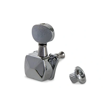 For guitars with flat headstock Covered single machine heads Small Kluson button, For 8 mm bore, Set 3 left, 3 right